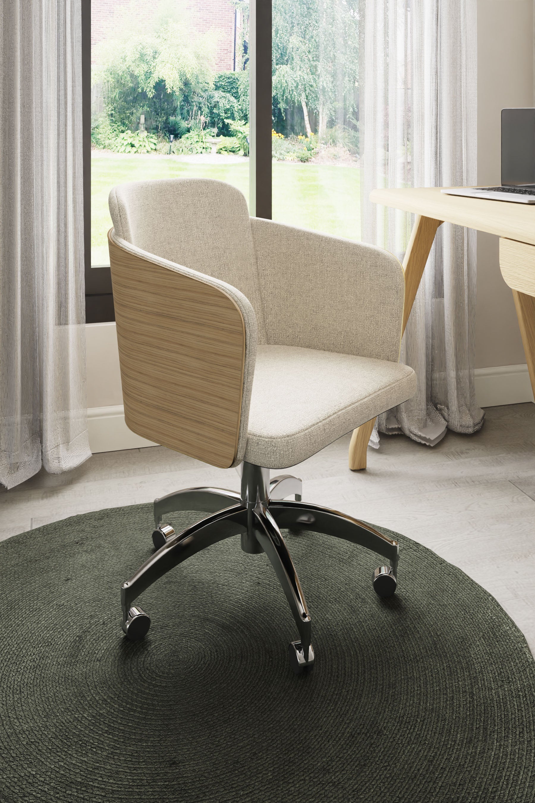 Real Wood Veneer - Unique Bentwood Curved Design - Modern Fabric Upholstery - Height Adjustable