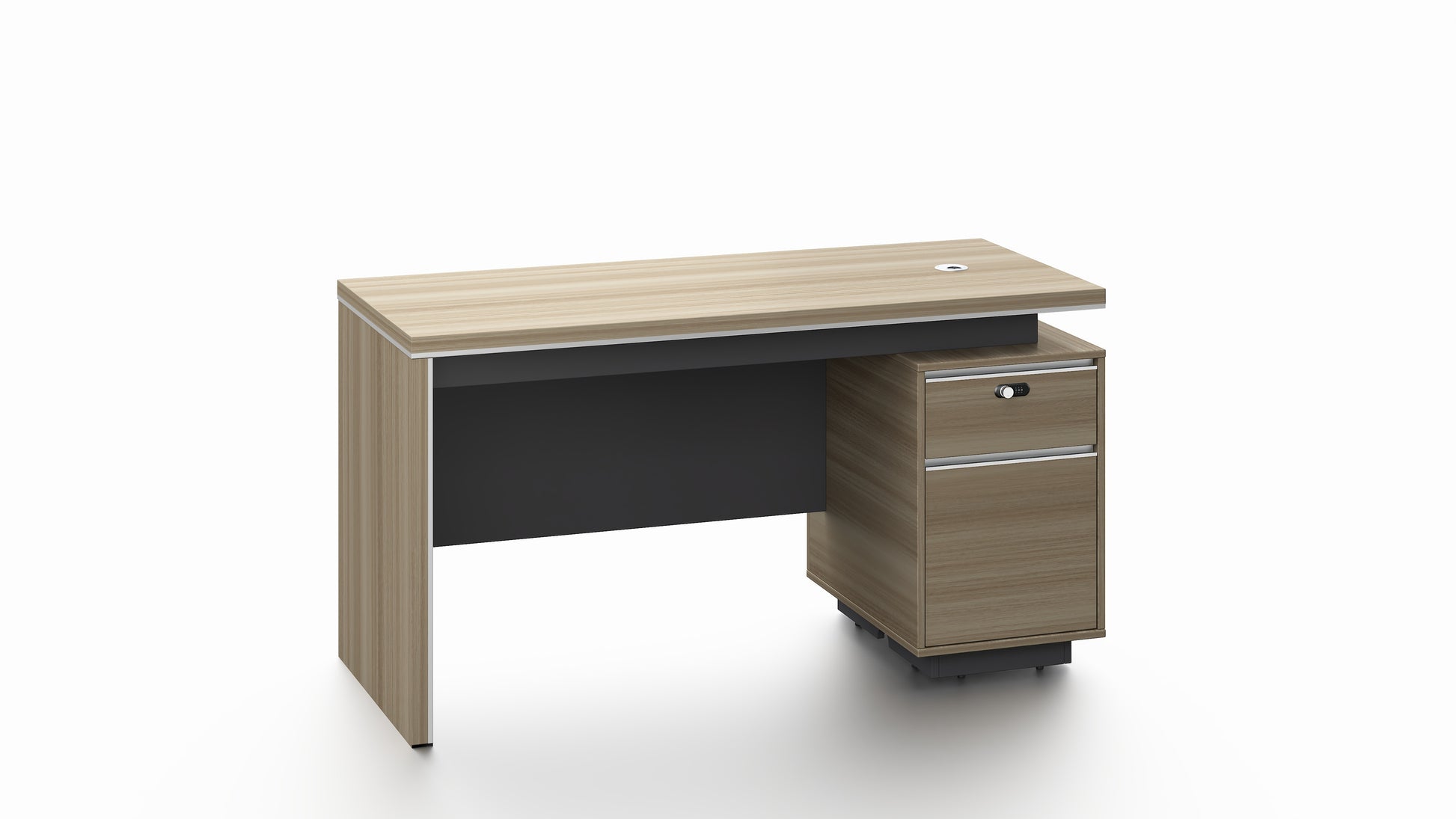 Thoughtfully designed for everyday use, the desktop features an integrated cable port to keep your workspace clean and organised. The integrated storage unit includes a cupboard for larger items and a lockable drawer, giving you secure and convenient storage right where you need it.