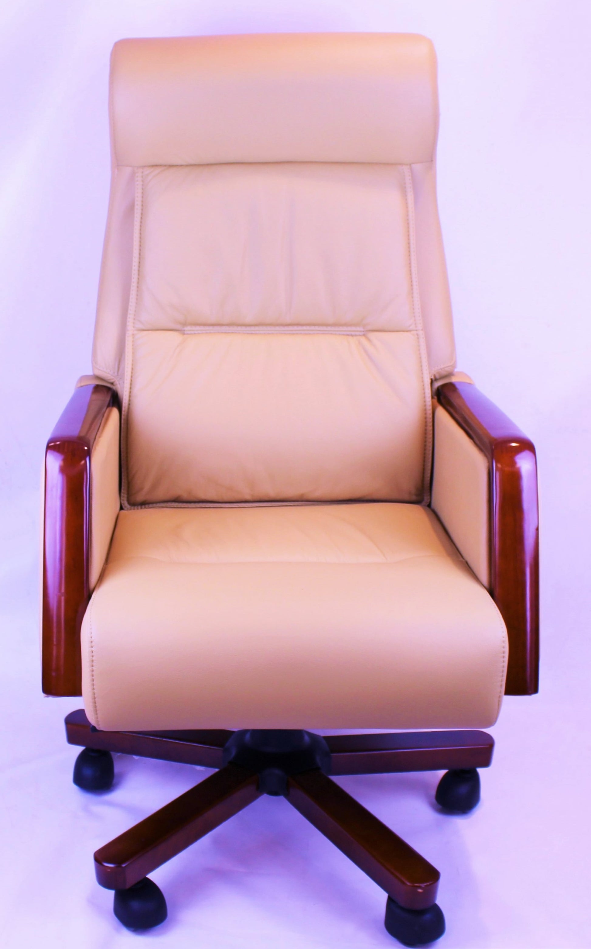 Reclining Beige Leather Executive Office Chair with Wooden Arms - SZ-A109