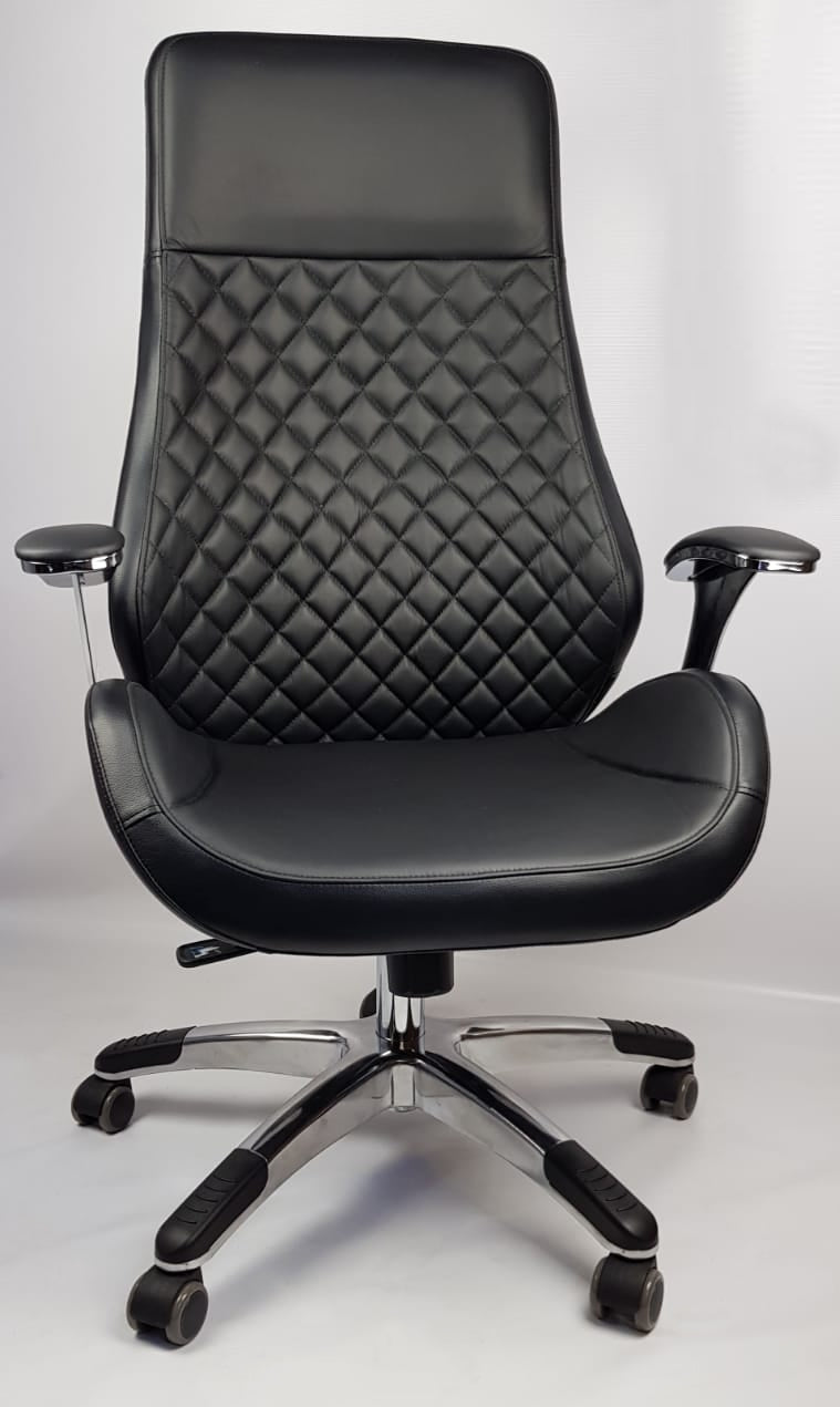 The 1107A is a modern contemporary visitor office chair. Perfect for nearly all office environments. Stylish diamond stitch style back with a bucket-style seat. This chair has fixed arms with a solid chrome base. The mechanism on this chair has a seat height adjustment, tension control and tilt lock system. This chair can also be locked in various positions depending on its use. This office chair has quality bonded leather upholstery.